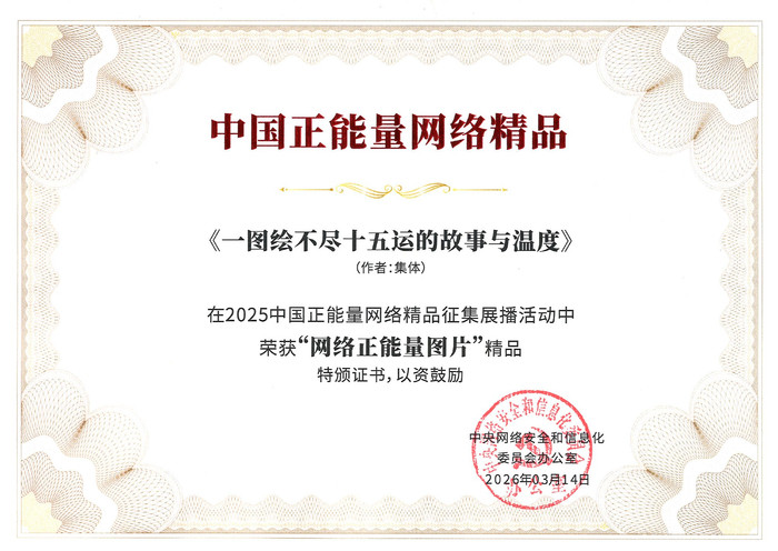 近日,由中央网信办主办的“2025中国正能量网络精品征集展播活动”评选结果揭晓,由中国体育报业总社有限公司新体育网原创制作的融媒体作品《一图绘不尽十五运的故事与温度》获评“网络正能量图片”精品。